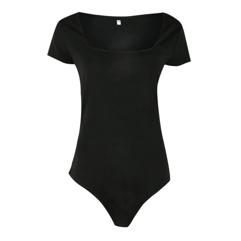 Best Offer Women\'s Fashion Sexy Spring Summer Solid Color Thin Section Square Collar Short Sleeved Slim Onesies Jumpsuit